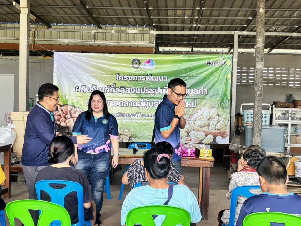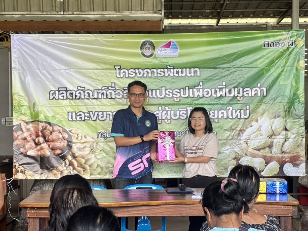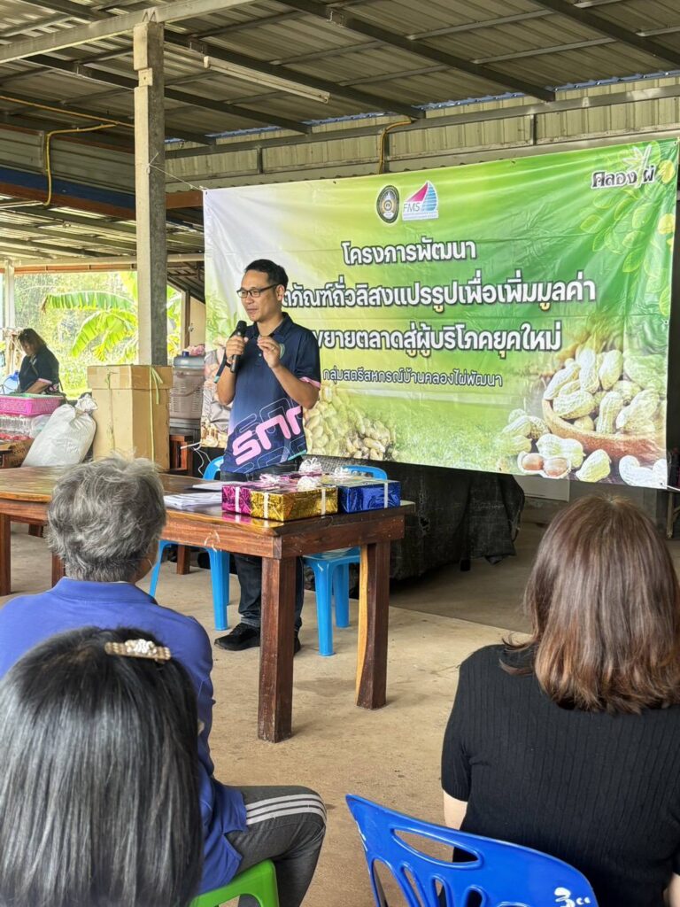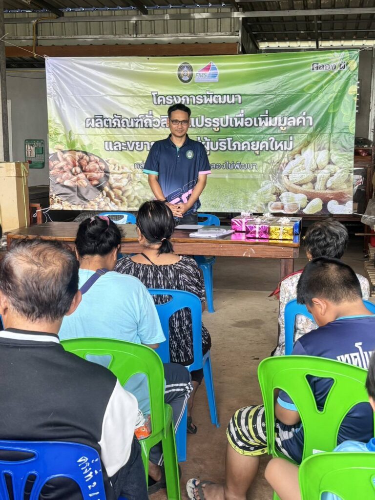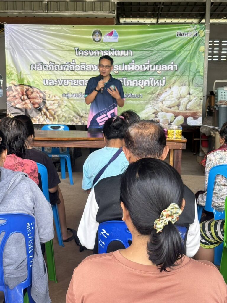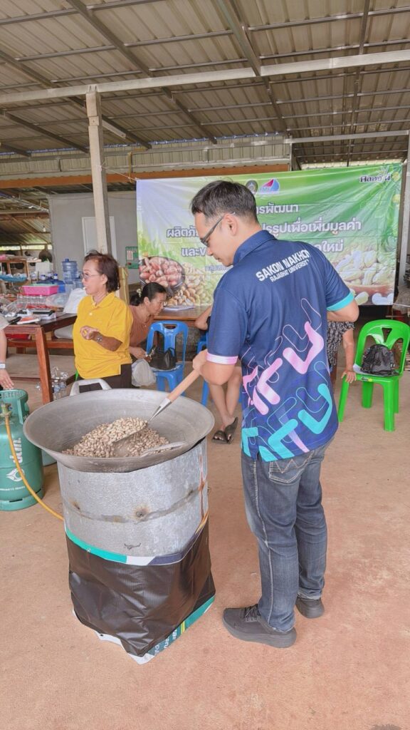 คณะวิทยาการจัดการ งานบริการวิชาการยุทธศาสตร์มหาวิทยาลัยราชภัฎเพื่อการพัฒนาท้องถิ่น จัดโครงการพัฒนาผลิตภัณฑ์ถั่วลิสงแปรรูปและขยายตลาดสู่ผู้บริโภคยุคใหม่ ณ บ้านคลองไผ่พัฒนา อ.เมืองสกลนคร