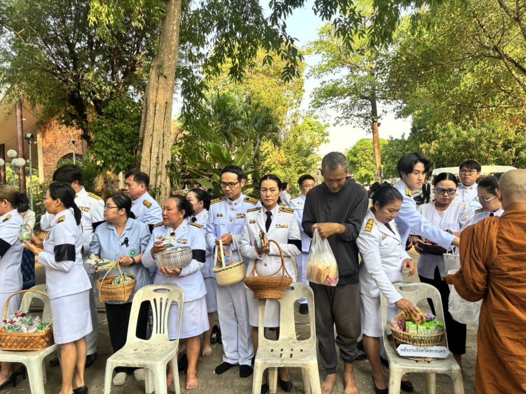 บุคลากรคณะวิทยาการจัดการ ตัวแทนมหาวิทยาลัยราชภัฏสกลนคร เข้าร่วมพิธีทำบุญตักบาตรและถวายพระราชกุศลเนื่องในวันจักรี 6 เมษายน ของทุกปี